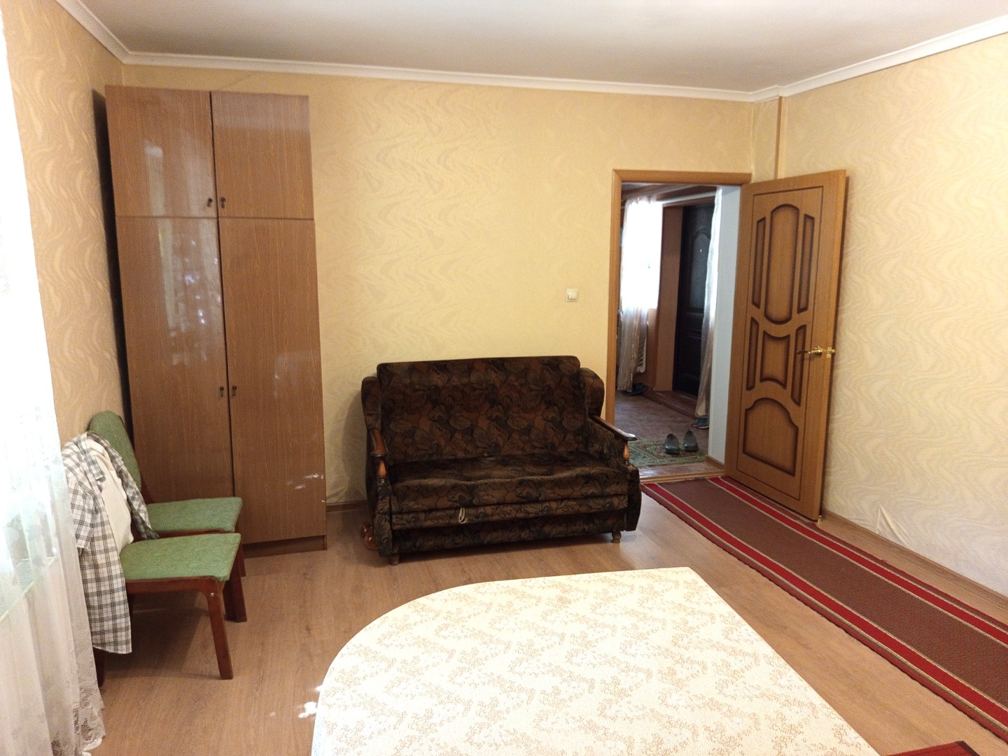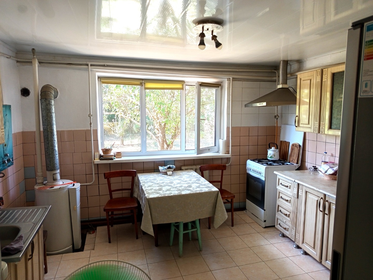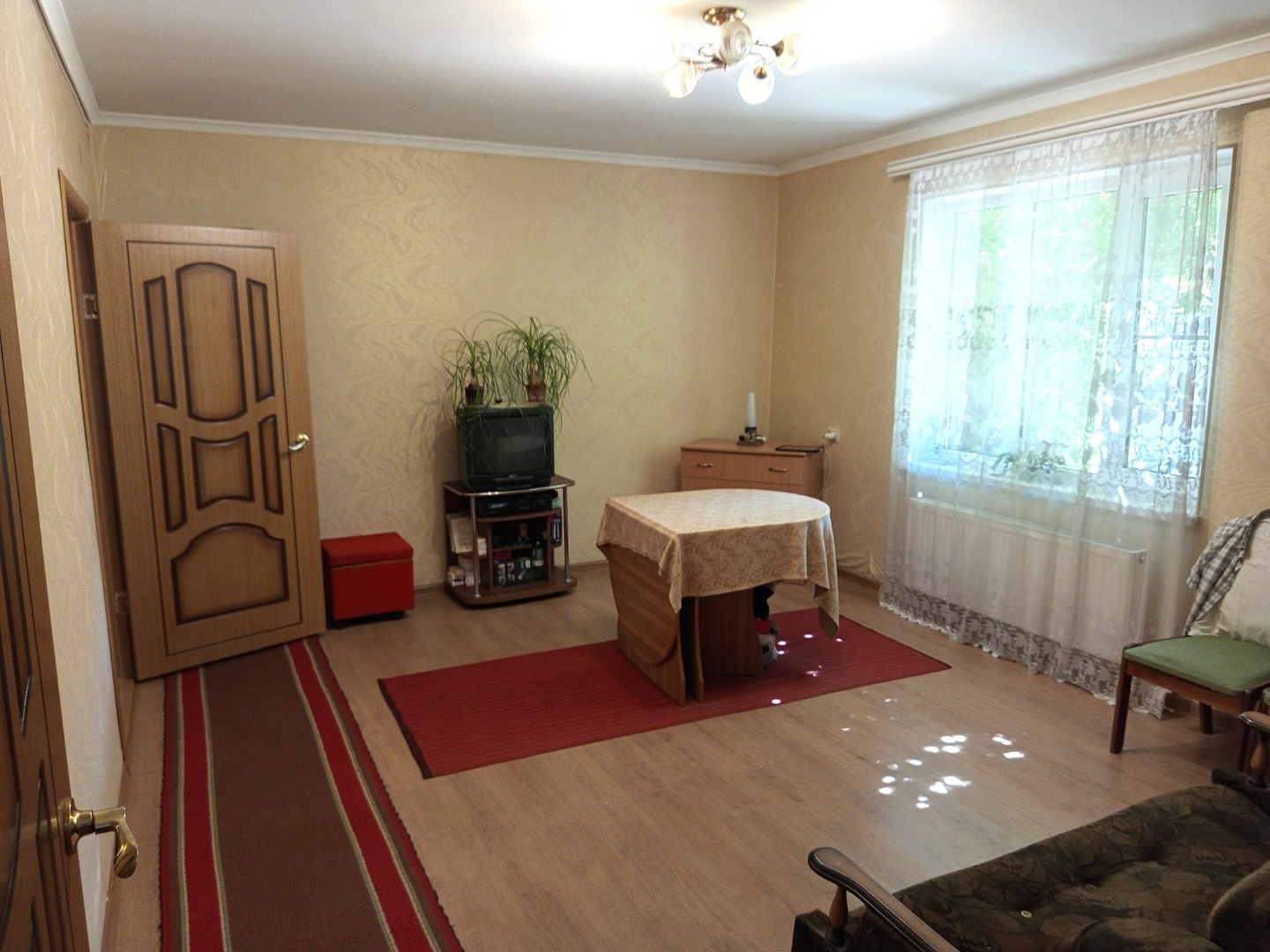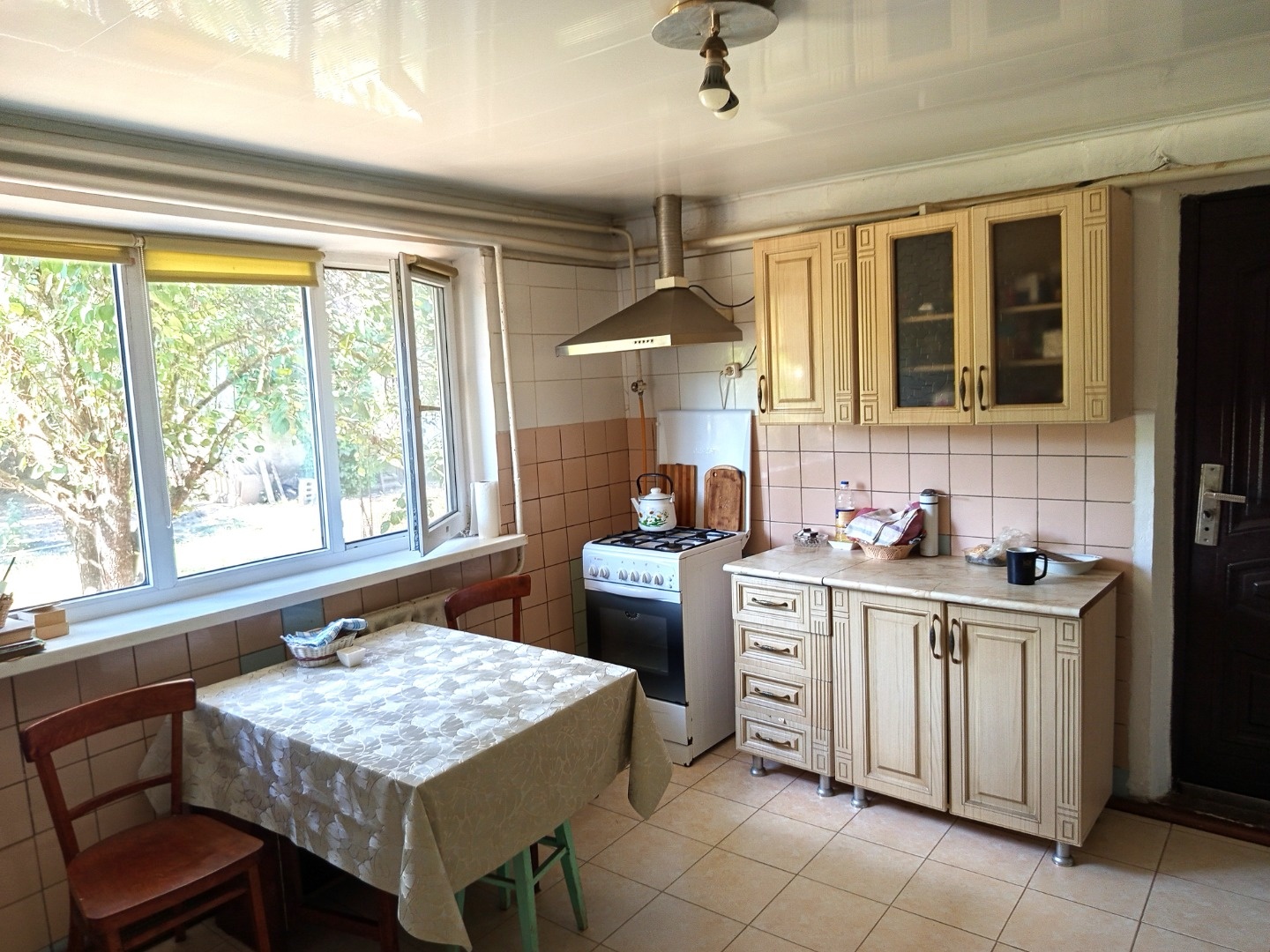 Продается благоустроенный дом в п. Ахтырском, Абинского района Краснодарского края. Год постройки – 1957, материал стен – кирпичные. В 1983 году произведена реконструкция дома. Все удобства и коммуникации, отопление – газовый котел. 4 жилые комнаты соединены с кухней и ванной крытым коридором. Высота потолков в жилых комнатах – 3 м. Большой земельный участок, площадью 15 соток, с шириной по фасаду – 31 м. Есть гараж, хоз. постройки, скважина для полива, много плодово – ягодных насаждений. Для любителей подсобного хозяйства, можно взять в аренду еще 10 соток прилегающей земли. Крепкий, добротный дом, полностью готовый к проживанию! Район станицы, улица без оживленного движения.