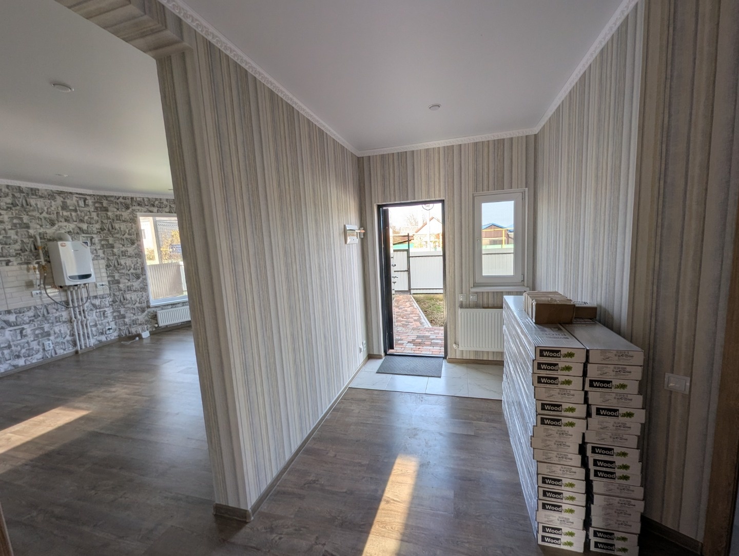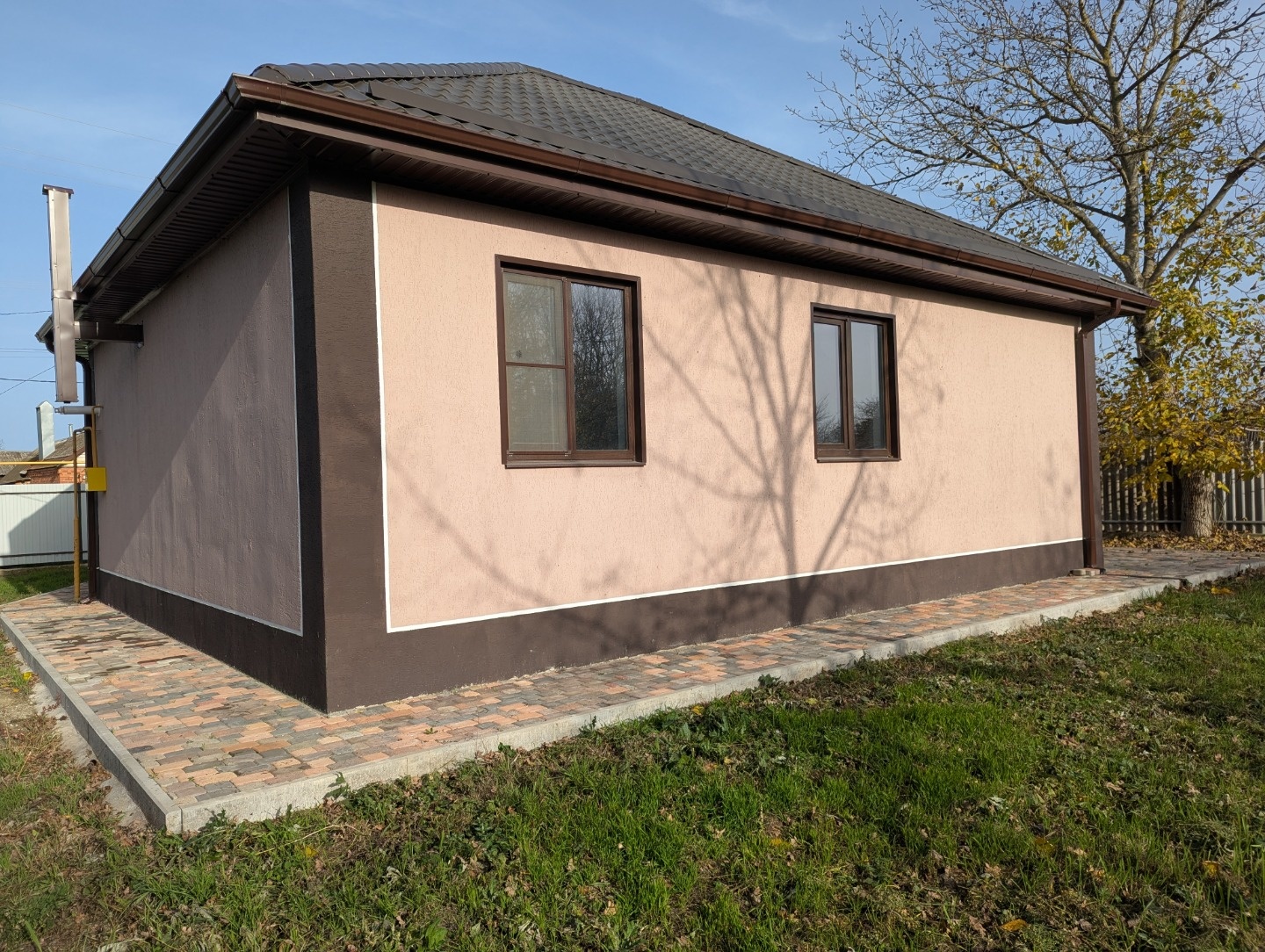 Продается новый благоустроенный дом в поселке Ахтырском, Абинского района Краснодарского края. Год постройки – 2023. Материал стен – керамзитобетонные блоки, с утеплением и декоративной штукатуркой. В доме 3 изолированные спальни, просторная кухня – гостиная- 24 кв.м., прихожая и большой совмещенный санузел. Все коммуникации подключены, навесной газовый 2-х контурный котел отопления, сетевой водопровод, канализация – септик. Большой, ровный земельный участок, площадью 16.8 соток с фасадом 22 м. Тихое, красивое место, до центра поселка – 20 минут пешком. Дом сдан в эксплуатацию и полностью готов к проживанию.
