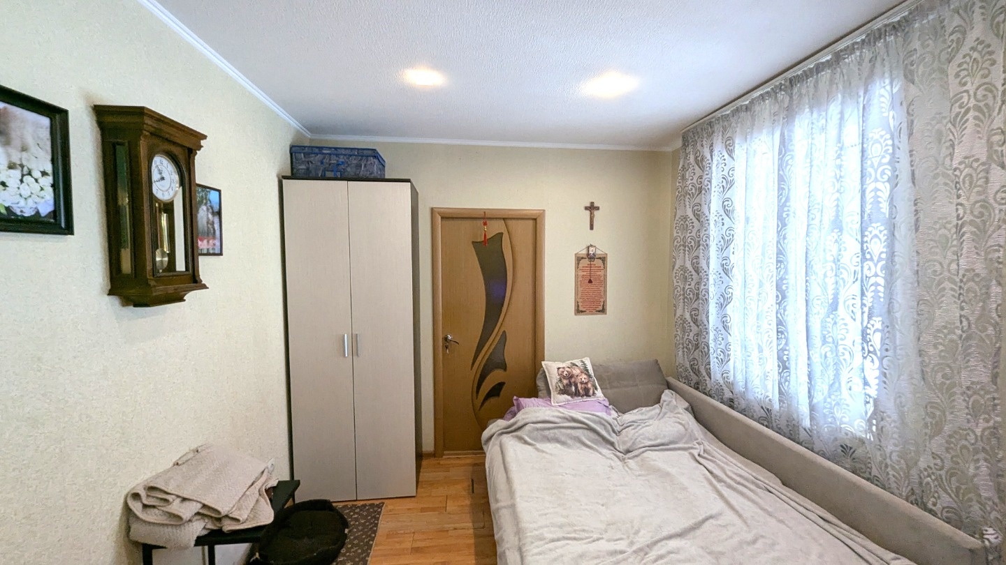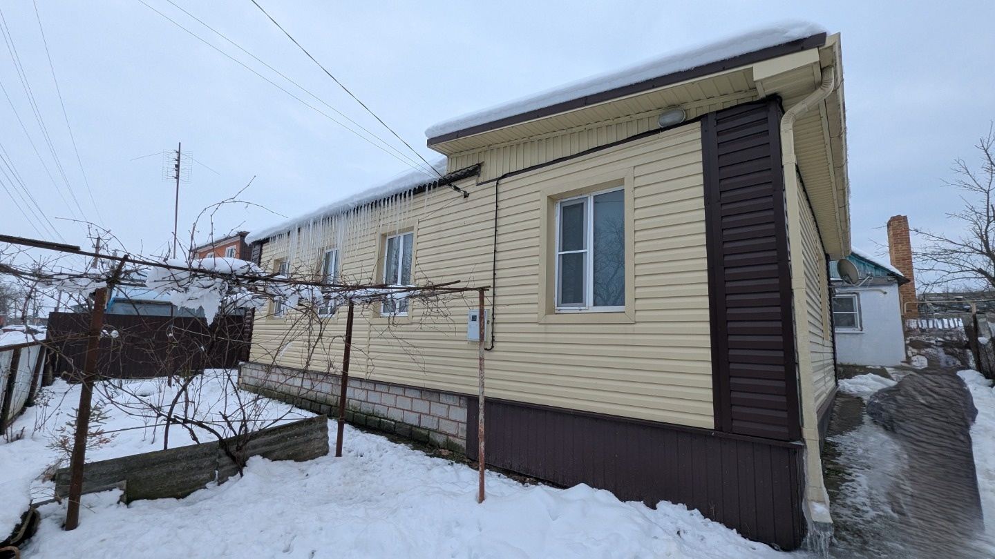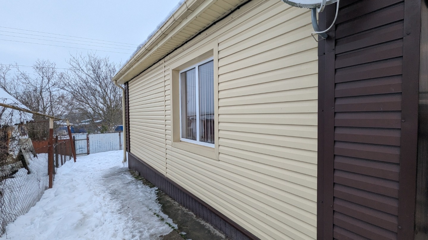 Продается благоустроенный дом в поселке Ахтырском, Абинского района Краснодарского края. Год постройки – 1969, материал стен – блочные, снаружи отделан металлическим сайдингом с утеплителем. В доме 4 жилые комнаты, большая комната под кухню – 16 кв.м. и совмещенный санузел. Высота потолков – 2.9 м. Отопление от газового котла, водоснабжение из скважины, канализация –септик. Есть газифицированная «летняя кухня», хоз. постройки, навес. Земельный участок – 12.7 соток. Огромная придомовая территория с выездом на асфальт. Район станицы, улица Центральная.